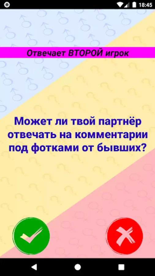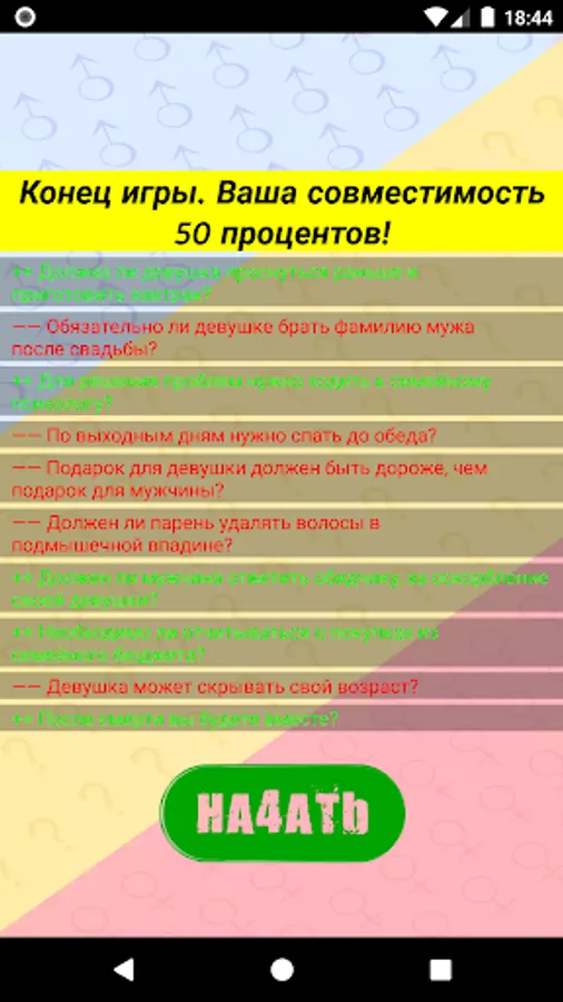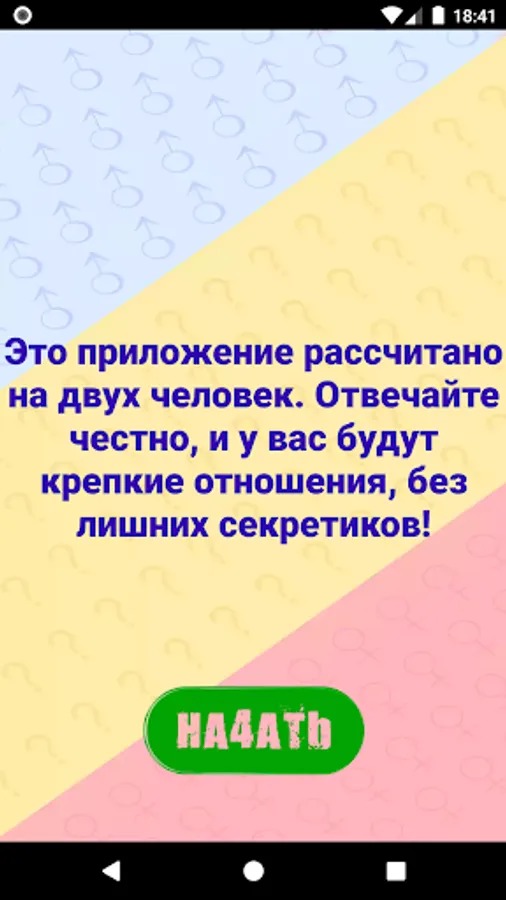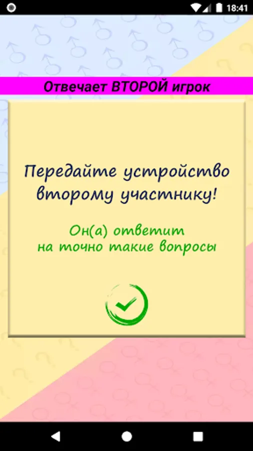 Invite your loved one (or beloved) for a good time. "Couple Compatibility Test" will help you learn a lot about your partner. Are there any secrets in your couple? It's time to check how you match each other! It randomly selects questions from different categories: relationships, friendship, family, sex, work and more.
