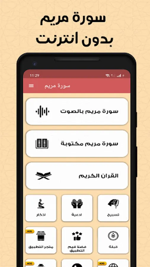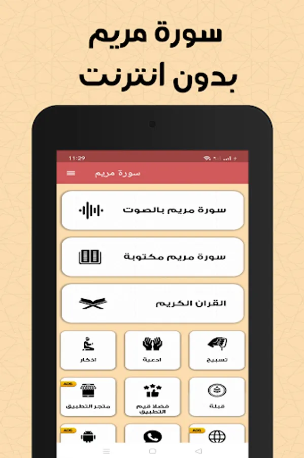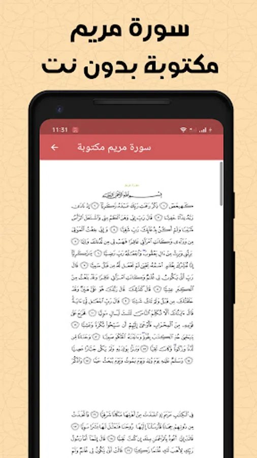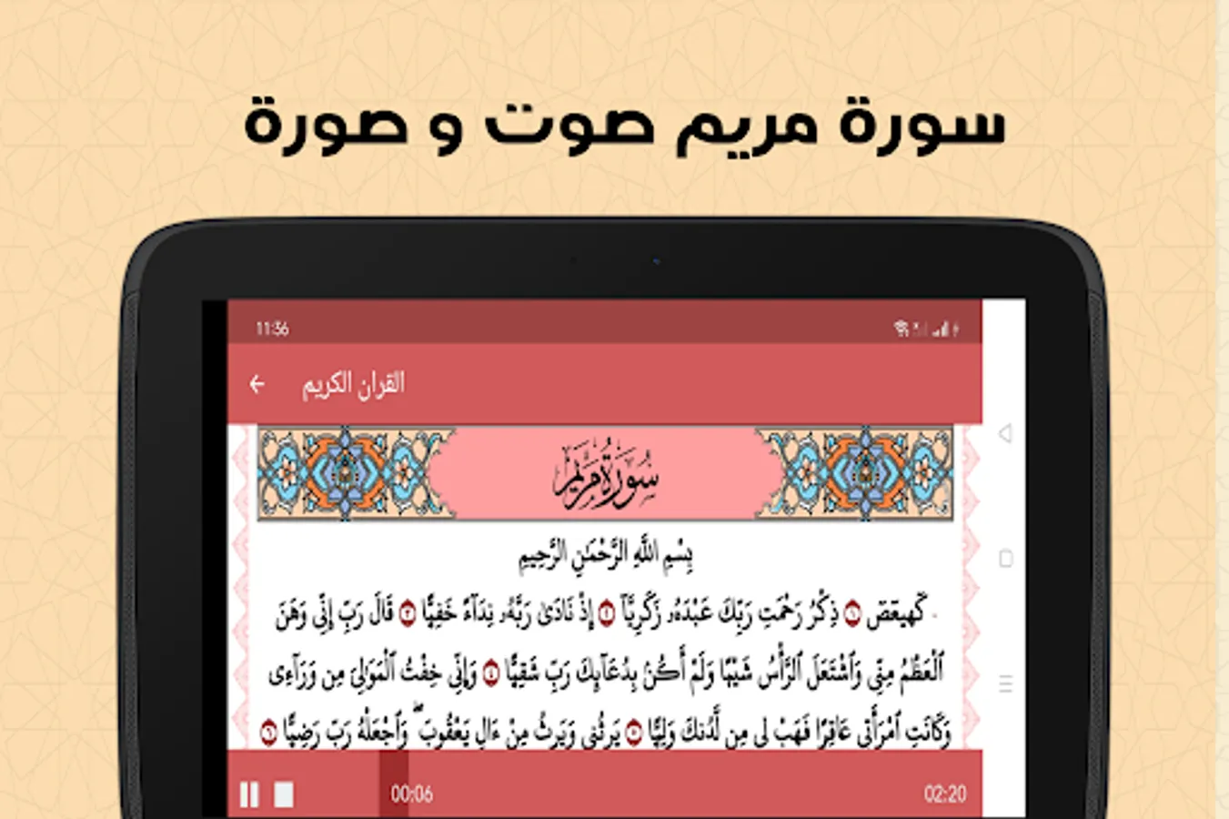 We present to you the new update for the application of Surat Maryam, written with a workshop narration and with audio, so that, dear user, you can read and memorize Surat Maryam without the Internet. Surat Maryam is one of the Meccan suras, the number of its verses is 93, except for verses Nos. 58 and 71, which are Medinan, and it is the nineteenth surah in the Qur’an, located in the sixteenth part. It was revealed after Surat Fatir, and it is the only surah named after a woman. She is Mary, the mother of the Prophet Jesus, peace be upon him.