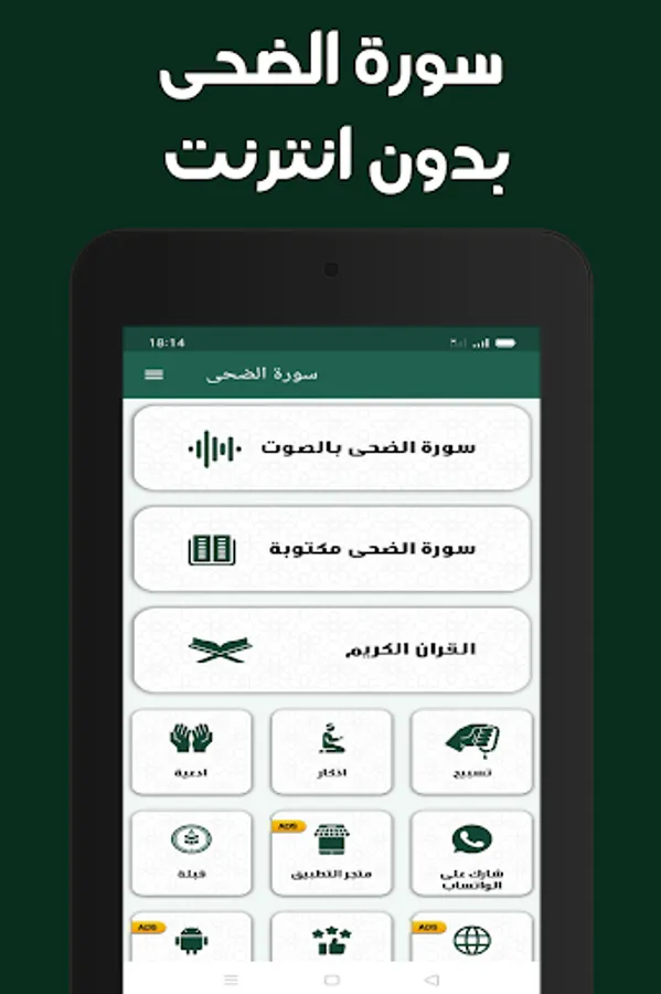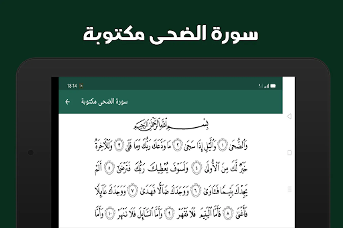 Surah Al-Duha written without the Internet is a very useful application that allows users to read and listen to Surat Al-Duha from the Holy Quran without the need for an Internet connection. It is one of the great Quranic suras that God Almighty revealed to our Holy Prophet, and it is worth noting that reading it has many virtues.
