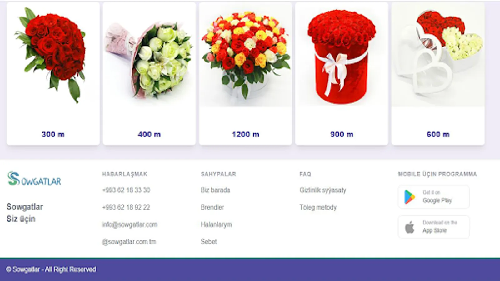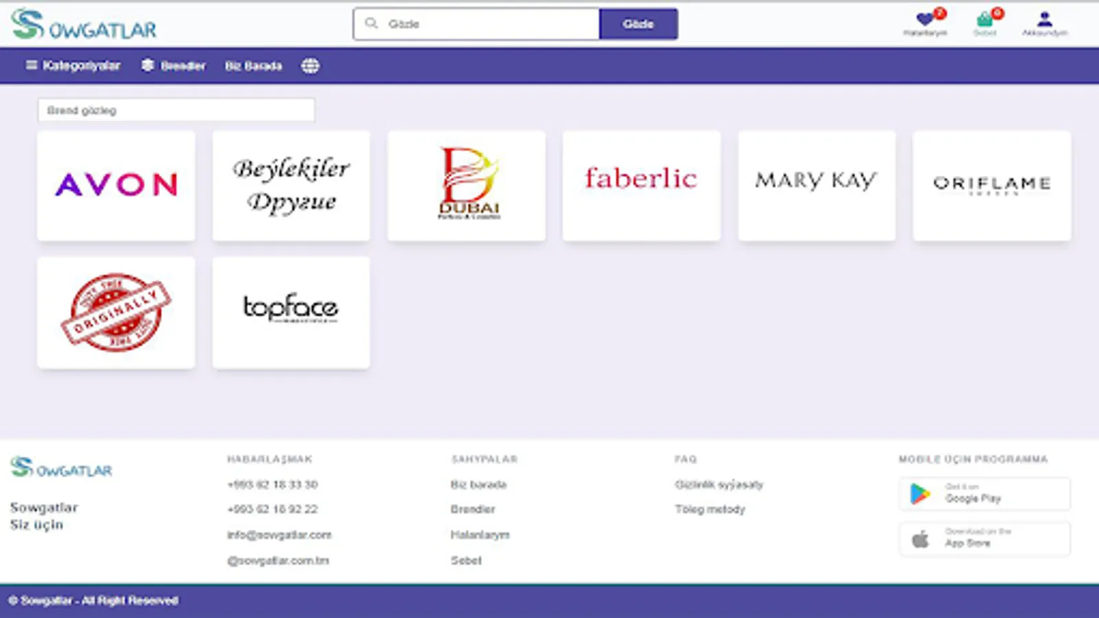 Onlaýn dukanymyz 2023-nji ýylyň ýanwar aýyndan bäri hyzmat edýär. Häzirki wagtda müşderilerimize amatly bahadan birnäçe brendlere degişli müňlerçe parfýumeriýa, kosmetika harytlaryny hödürleýäris hem-de haryt görnüşlerini köpeltmegi dowam etdirýäris. Bu saýt wagtyňyzy tygşytlap transport çykdaýjylaryny etmezden ýakynlaryňyza sowgat etmeklige we özüňize gerekli harytlary almaklyga mümkinçilik berýär. Şeyle-de, tölegleri haryt alanyňyzdan soň, nagt ýa-da bank kartlaryndan terminalyň üsti bilen nagt däl görnüşinde hasaplaşyp bilersiňiz. Eltip berme hyzmaty ýurduň islendik künjegine elýeterli.
