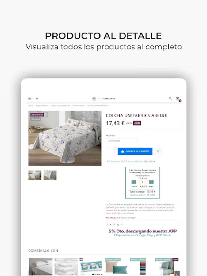In our APP all your purchases are cheaper, download it and visit the most complete catalog of bedding. We put at your disposal all existing styles, colors and sizes. We clarify your doubts in less than 24 hours with personalized attention.
