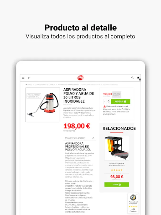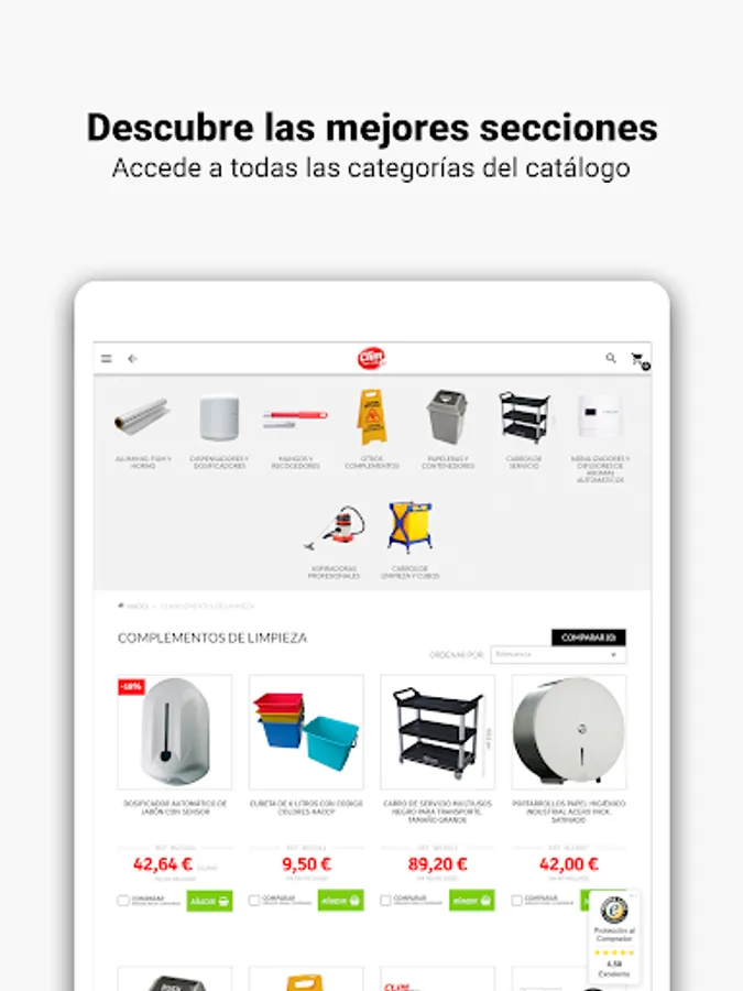 Browsing our application you will have all the information about our cleaning and disposable products such as the composition, technical sheets, recommendations for use, etc.
