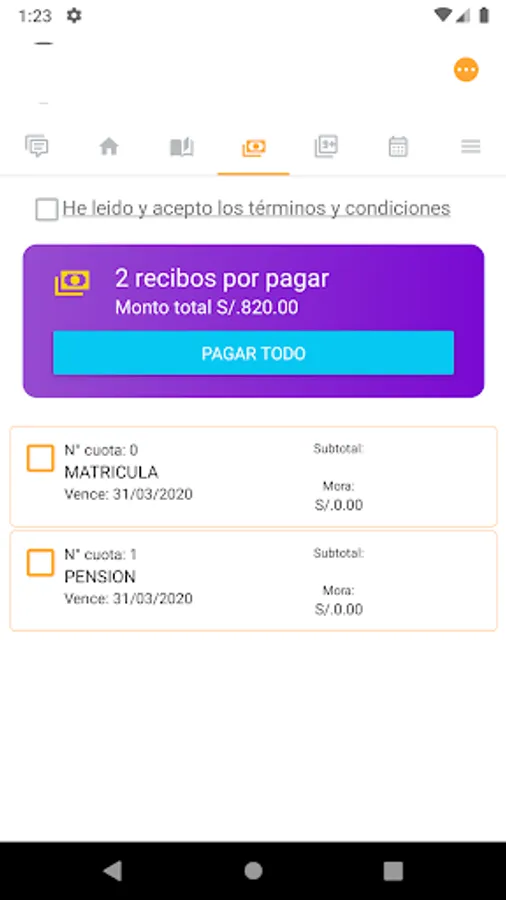 - Visualization of notes: you will be able to visualize your final averages and the detail of your notes.