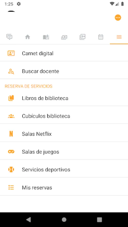 - Book services: you can make the reservation of the services offered by the university (netflix rooms, books, online games, among others).