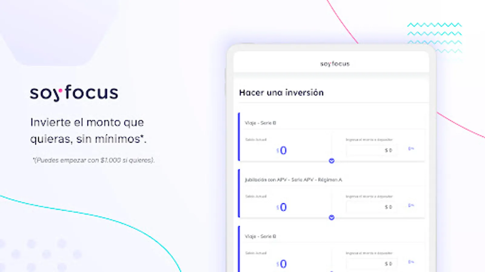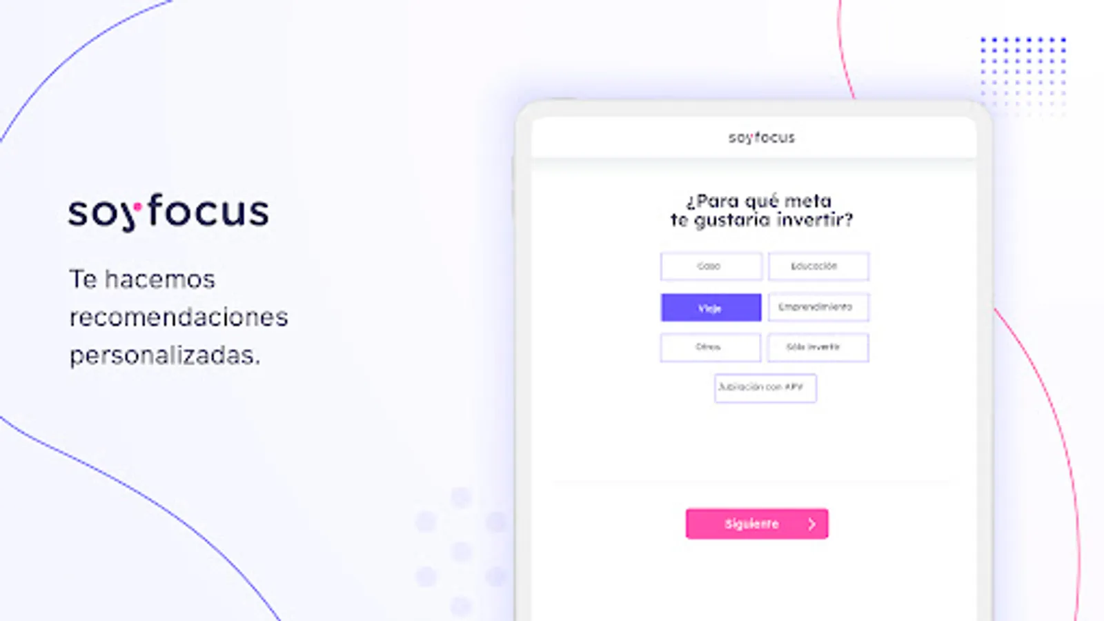 SoyFocus is a fintech whose mission is that everyone can invest in a simple way, according to their objectives and with low costs.