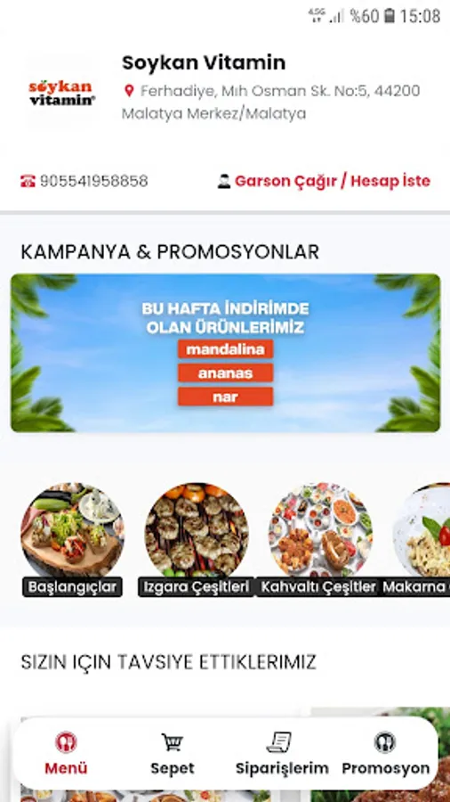 Malatya Soykan Vitamin Food Ordering Application and QR Menu System