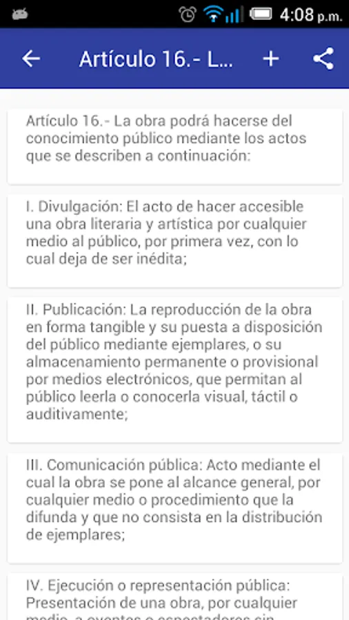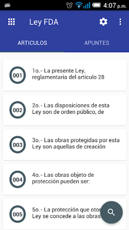 Application designed to help in the search for articles of Mexican law, as well as a support tool allowing comments to be added to articles and creating lists of articles.