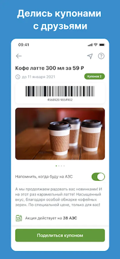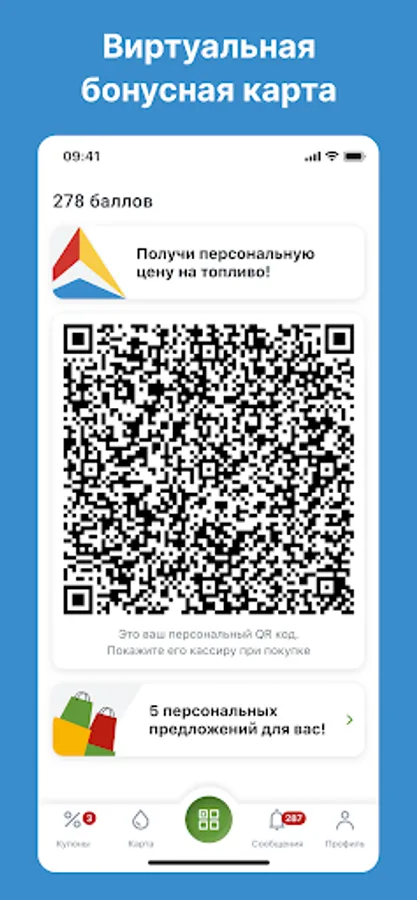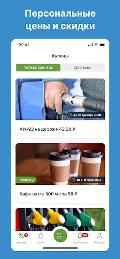 The application allows you to accumulate bonus points for purchasing fuel, store goods, cafe services, car wash, and also provides access to electronic coupons with super discounts and participation in promotional prize drawings from the SOYUZ gas station network. In addition: