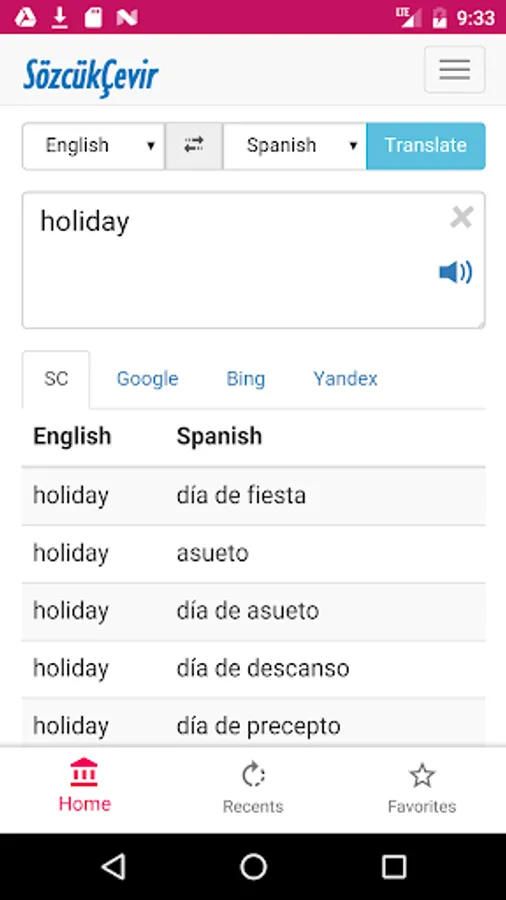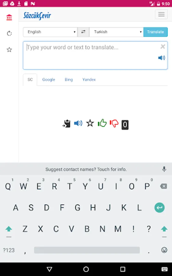 SozcukCevir Dictionary App is a fast way to translating your words and texts. Our app is a very lightweight dictionary and translation app. You can search for the definition of a word or translate it to any language you want in just ONE Tap and for FREE!