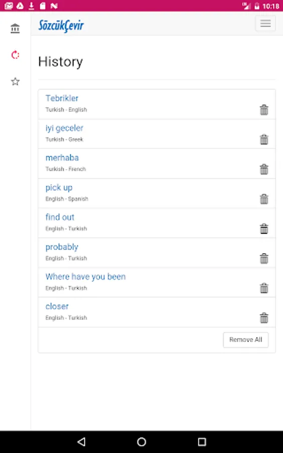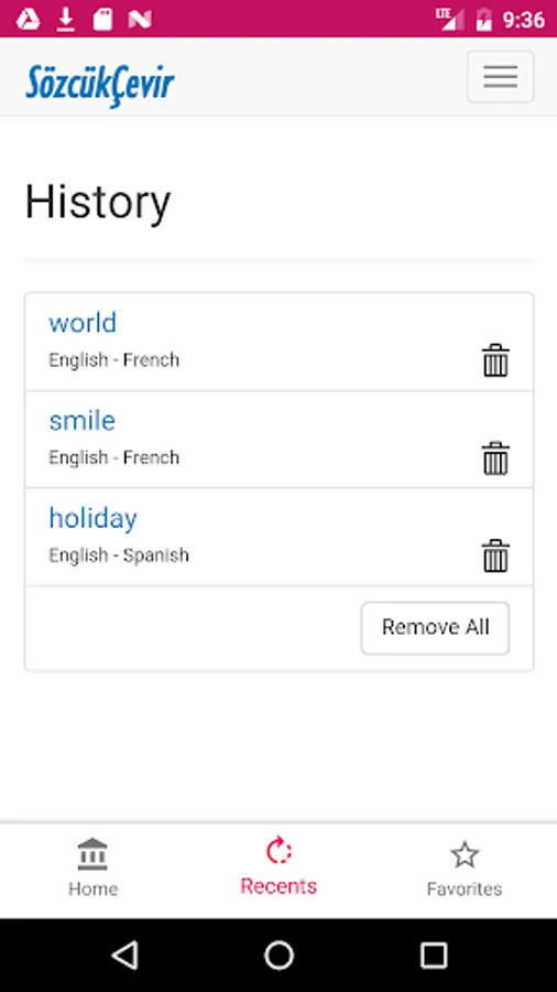 ✓ You don't need to remember each word you translated, we save the history of your translation automatically so that you can access to them quickly later.