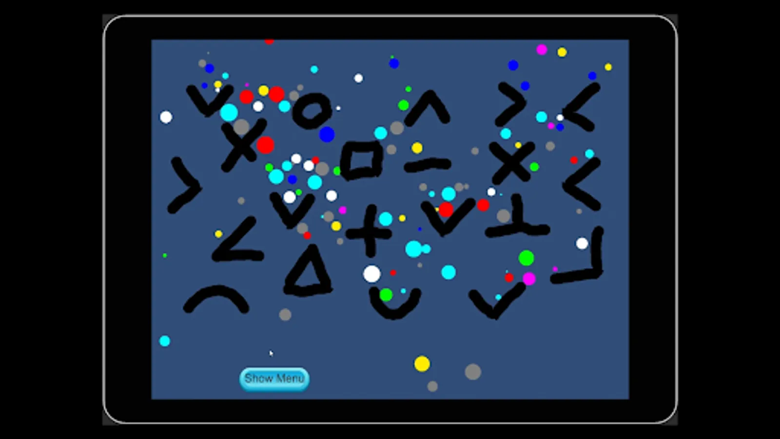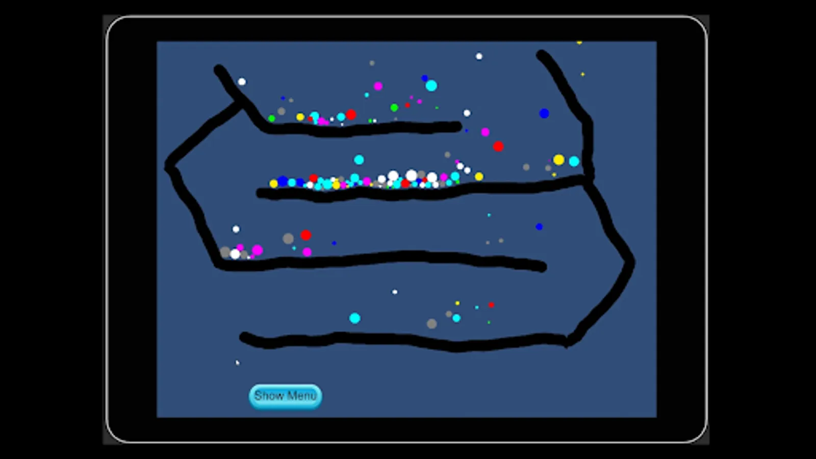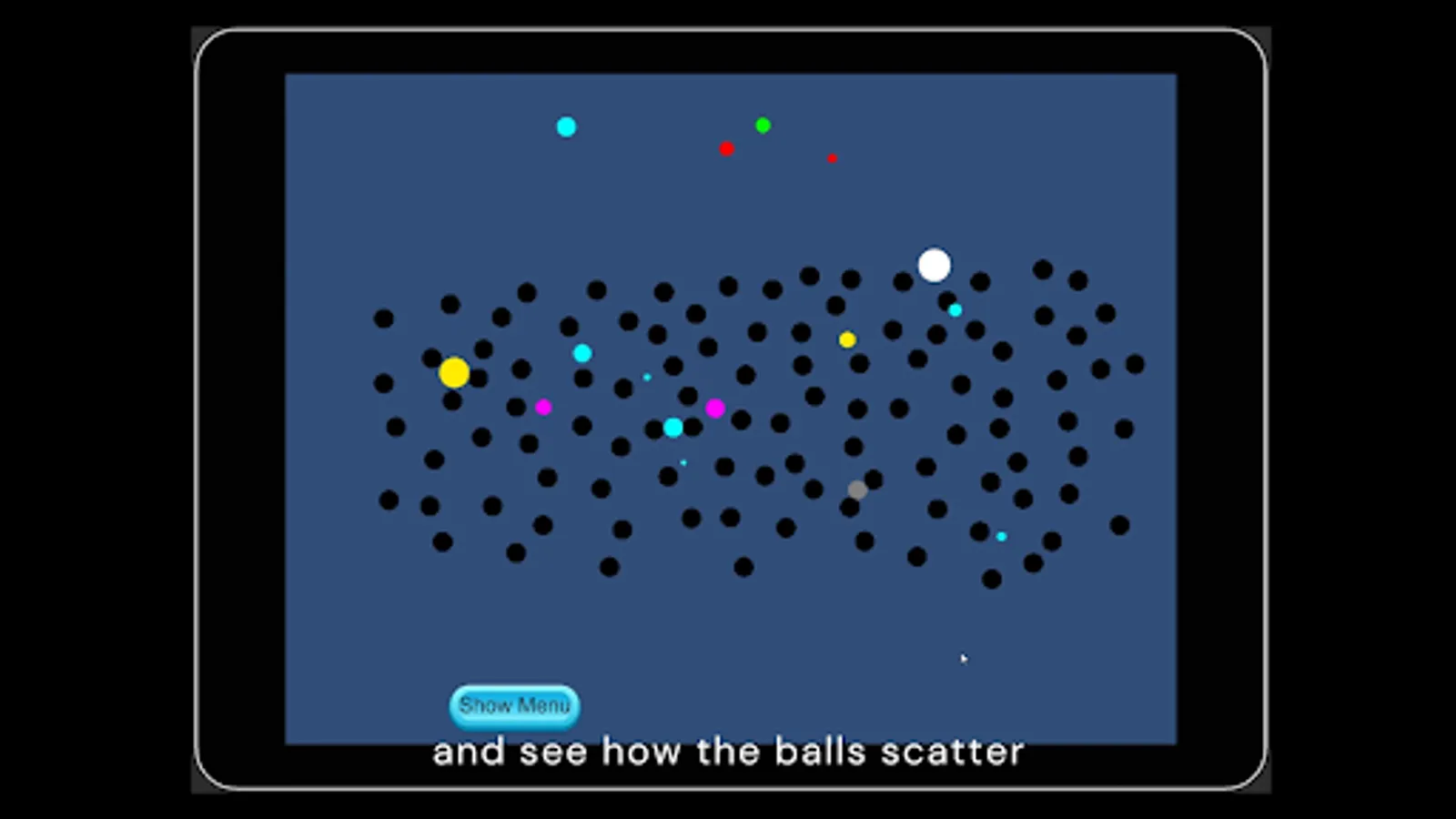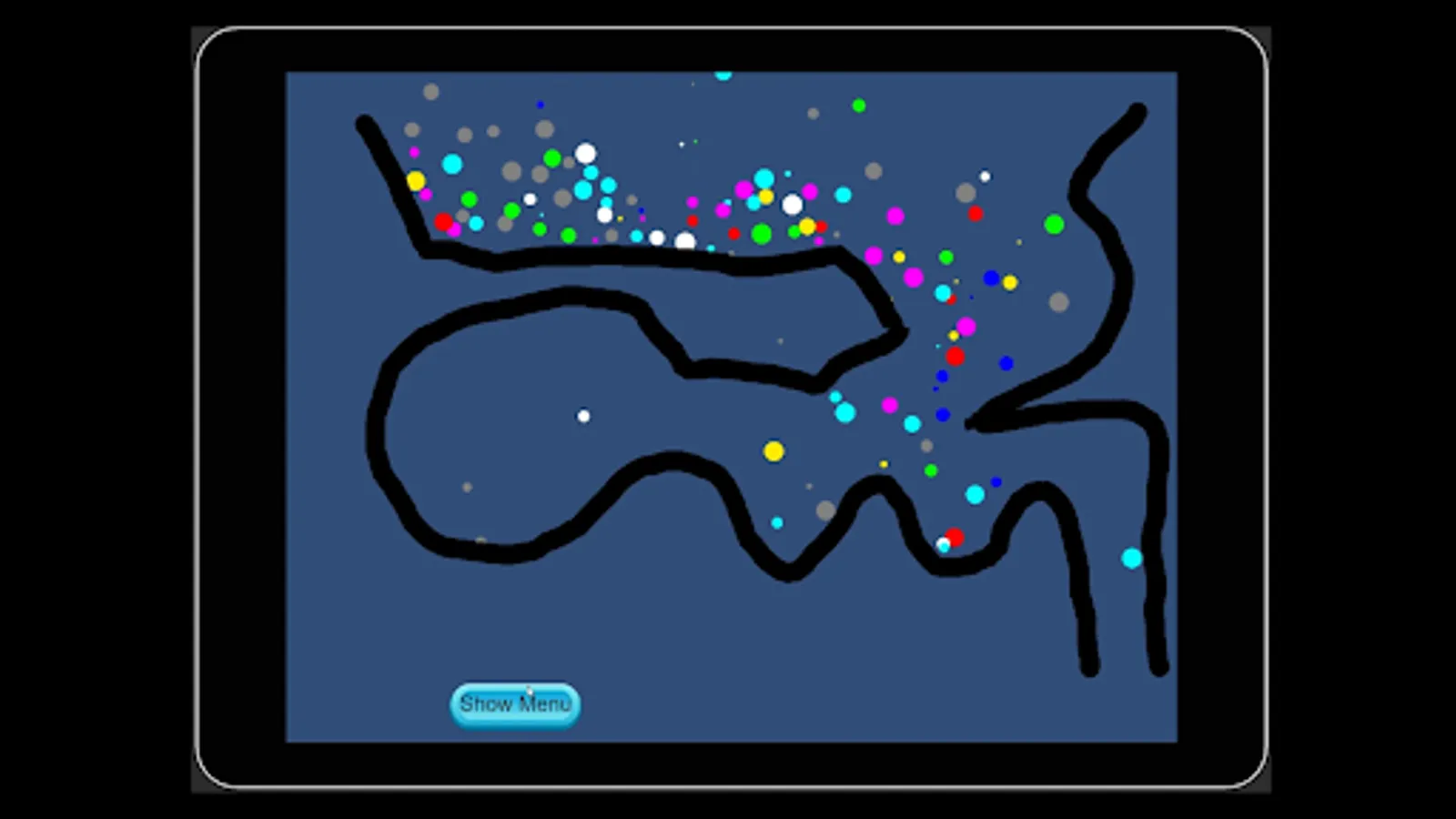 Using this application you simulate bouncy balls. The balls bounces from the surfaces which are defined by the user. User defines the surfaces by drawing lines or curves on the screen. Therefore number of schemes is unlimited and it is up to users imagination.