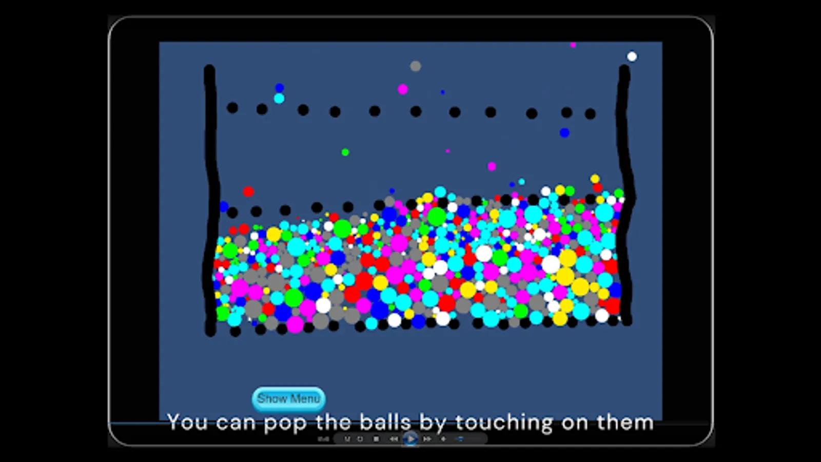 You can pop the balls by touching them, sometimes it is useful to unblocked the parts blocked by the bigger balls. You can also change the speed of time, so you can have slow motion or vice versa.