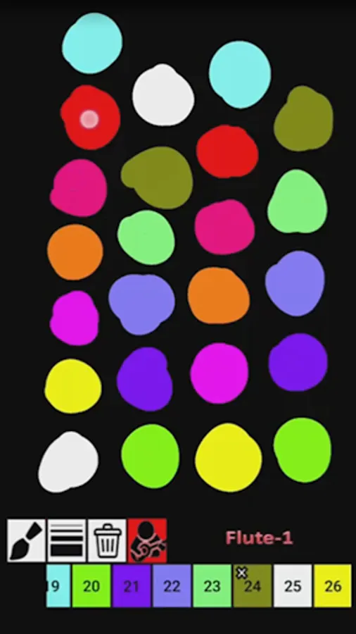 In this application, you can draw predefined American Flute samples on the screen using a color palette. Each individual color in the palette corresponds to a unique flute sample. So you can play flute by touching on the drawn colors.