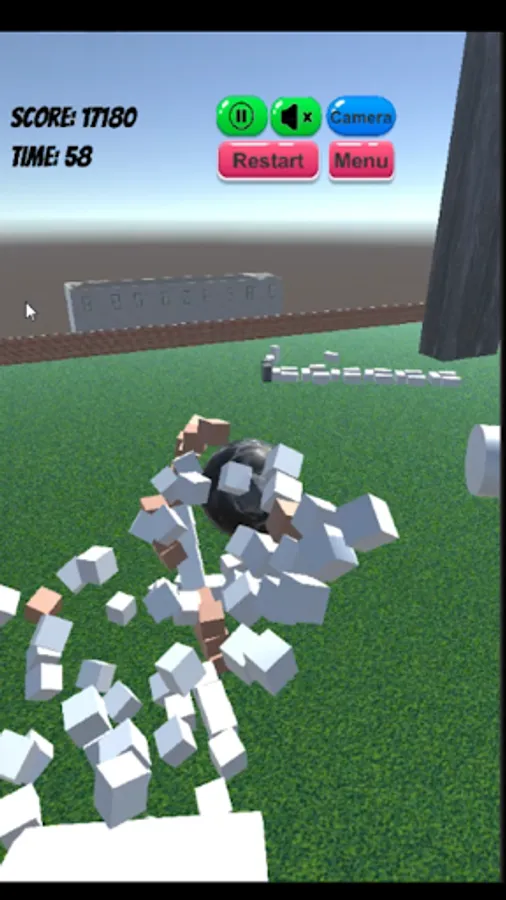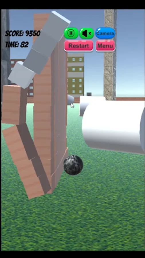 In this game you drive a marble ball to knock down towers made up of brick, crate, barrel, and marble. As you knock down more towers the weight, size, and speed of the marble ball increases. So you can have more momentum which gives higher impact. You start by knocking down smaller and lightweight towers to gain weight and size, and then you can knock down heavier and bigger towers. Good luck!