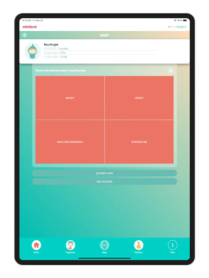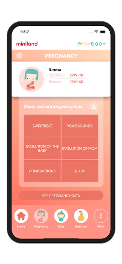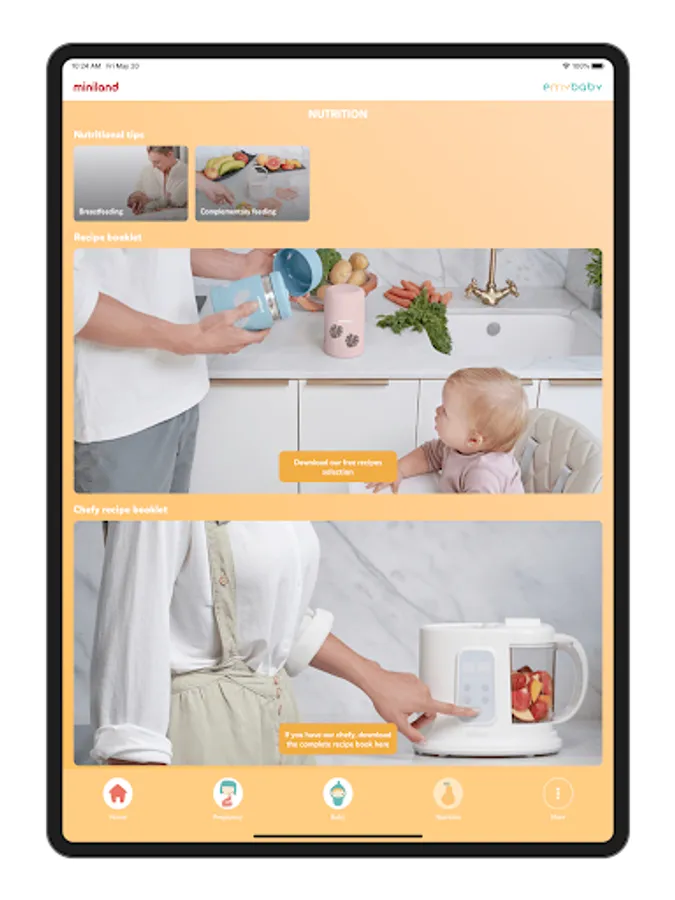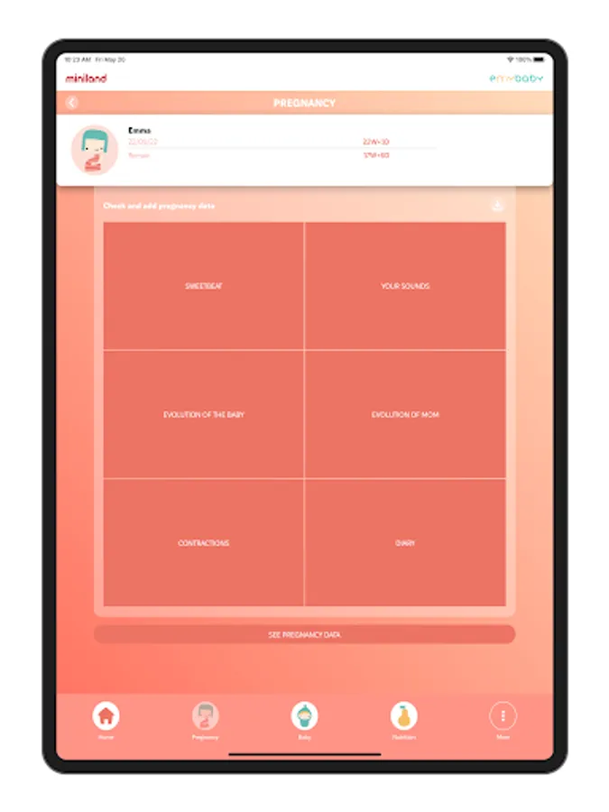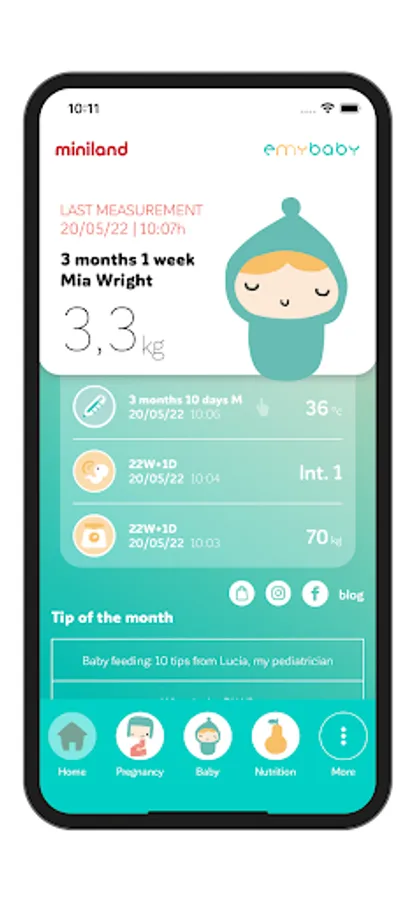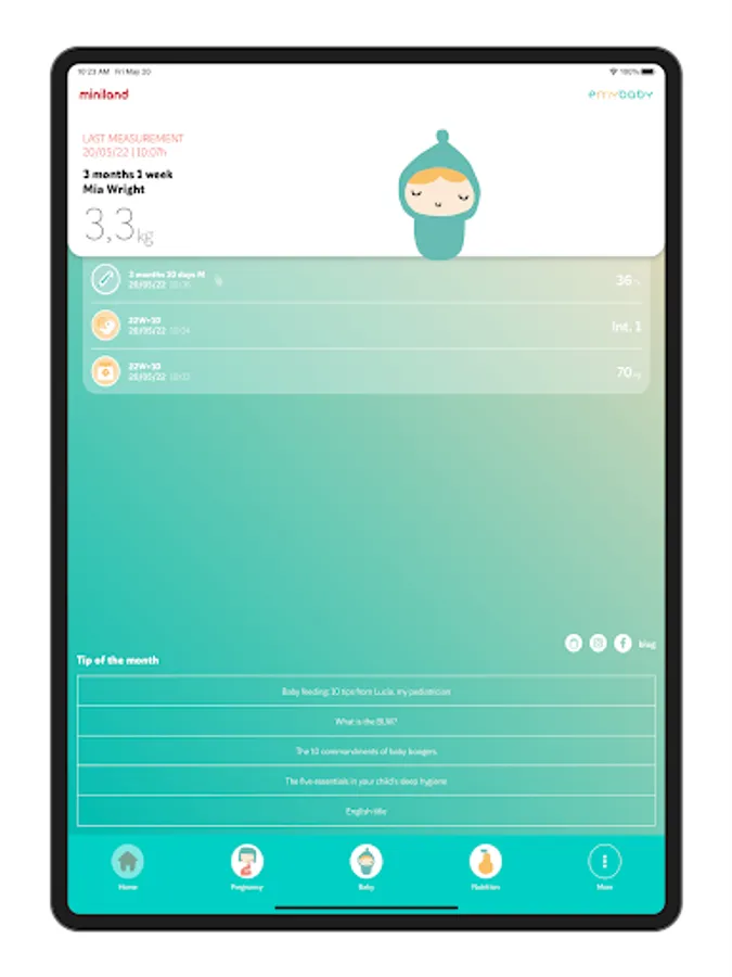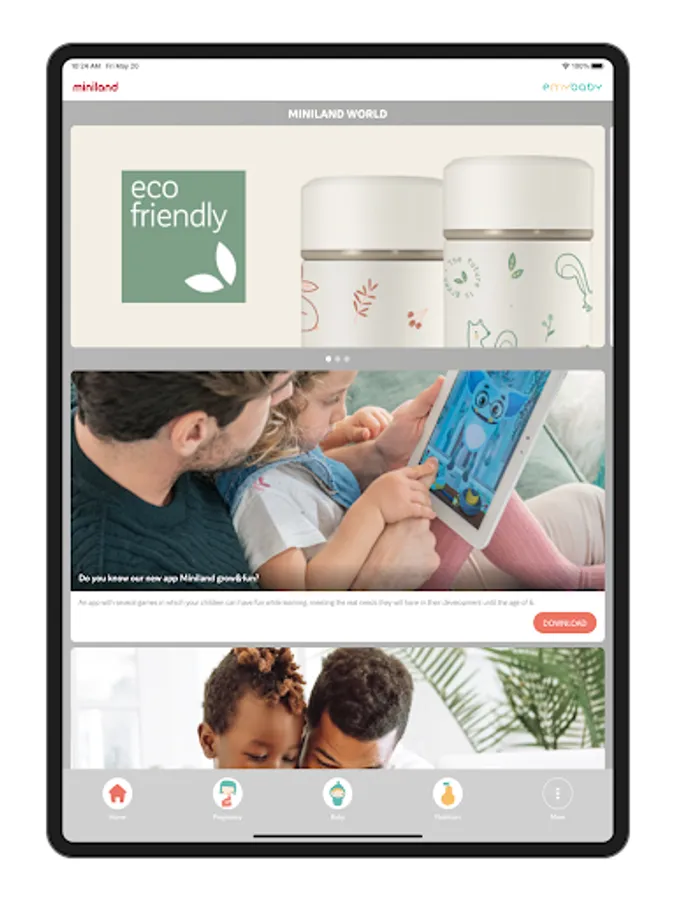 Miniland emybaby is a free app for tracking the evolution of your babies and a pregnancy app, focused on the well-being of the baby and designed for families, winner of the MIA award for innovative product.