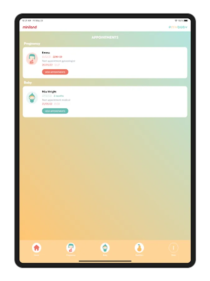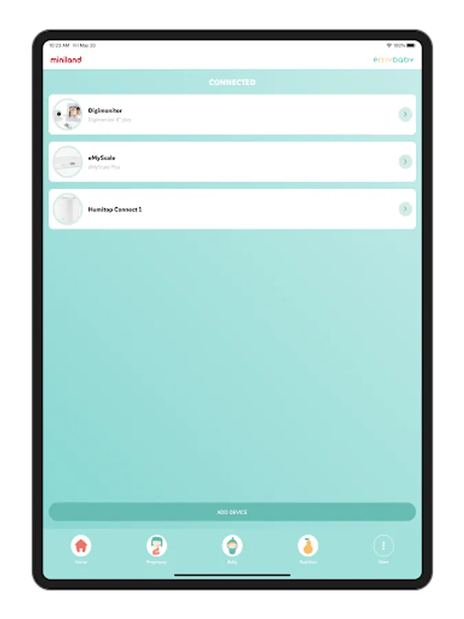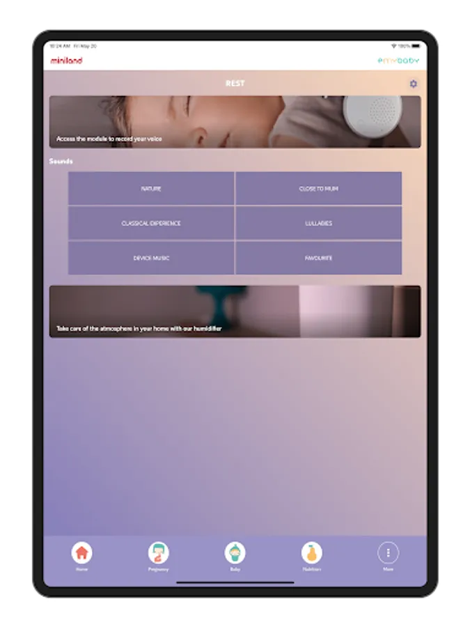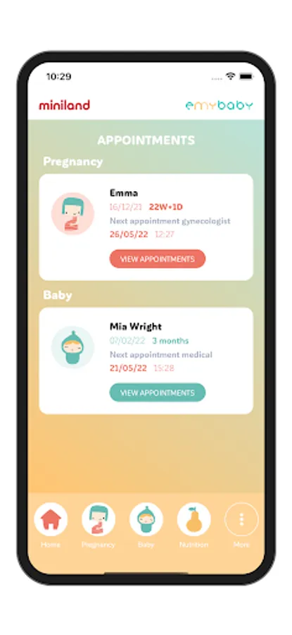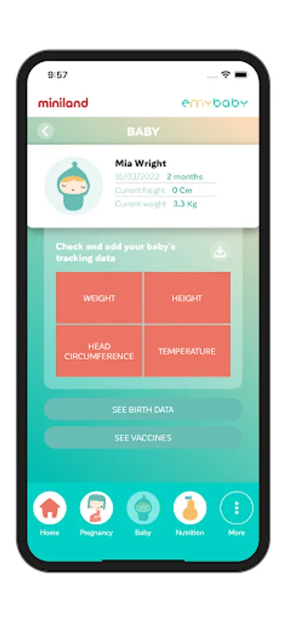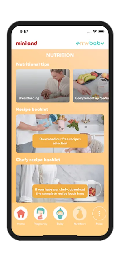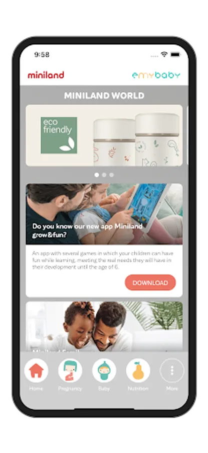 Miniland emybaby is a free app for tracking the evolution of your babies and a pregnancy app, focused on the well-being of the baby and designed for families, winner of the MIA award for innovative product.