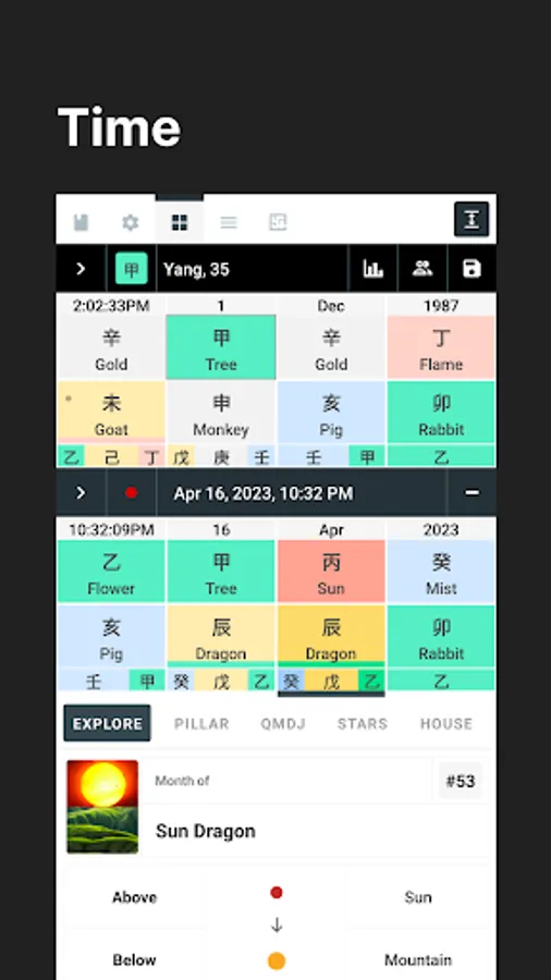 10 Heavenly Stems (Tree, Flower, Sun, Flame, Mountain, Soil, Iron, Gold, Ocean, Mist)