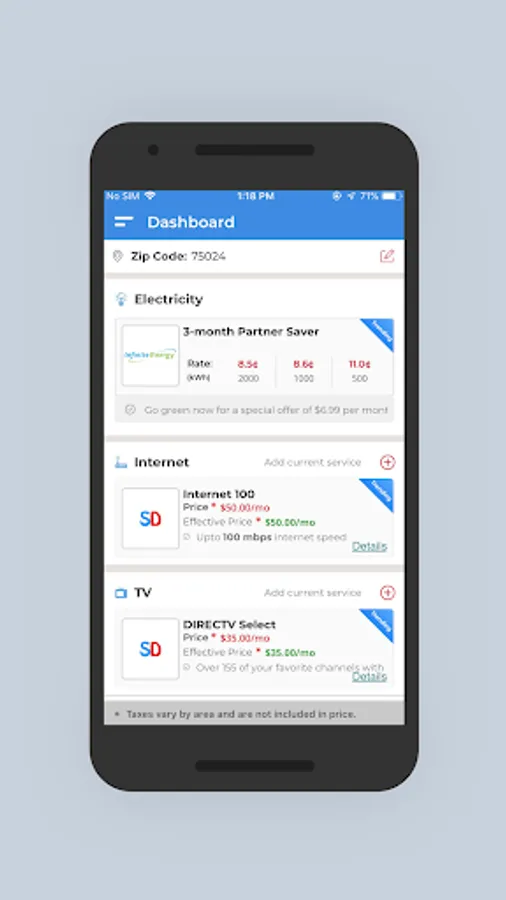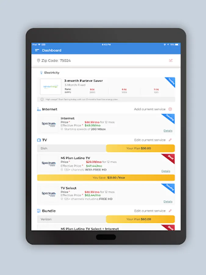 A unique app that lets you search, compare, shop, and switch to cheap internet plans, cheap cable TV plans, cheap WiFi plans, cheap electricity plans, and best home security plans at discounted rates, ServiceDealz app is a must-have on your mobile. Get the app to start searching the best home service deals for your address by using your ZIP code. Quickly compare internet plans and other home service deals to ensure bigger savings every month.