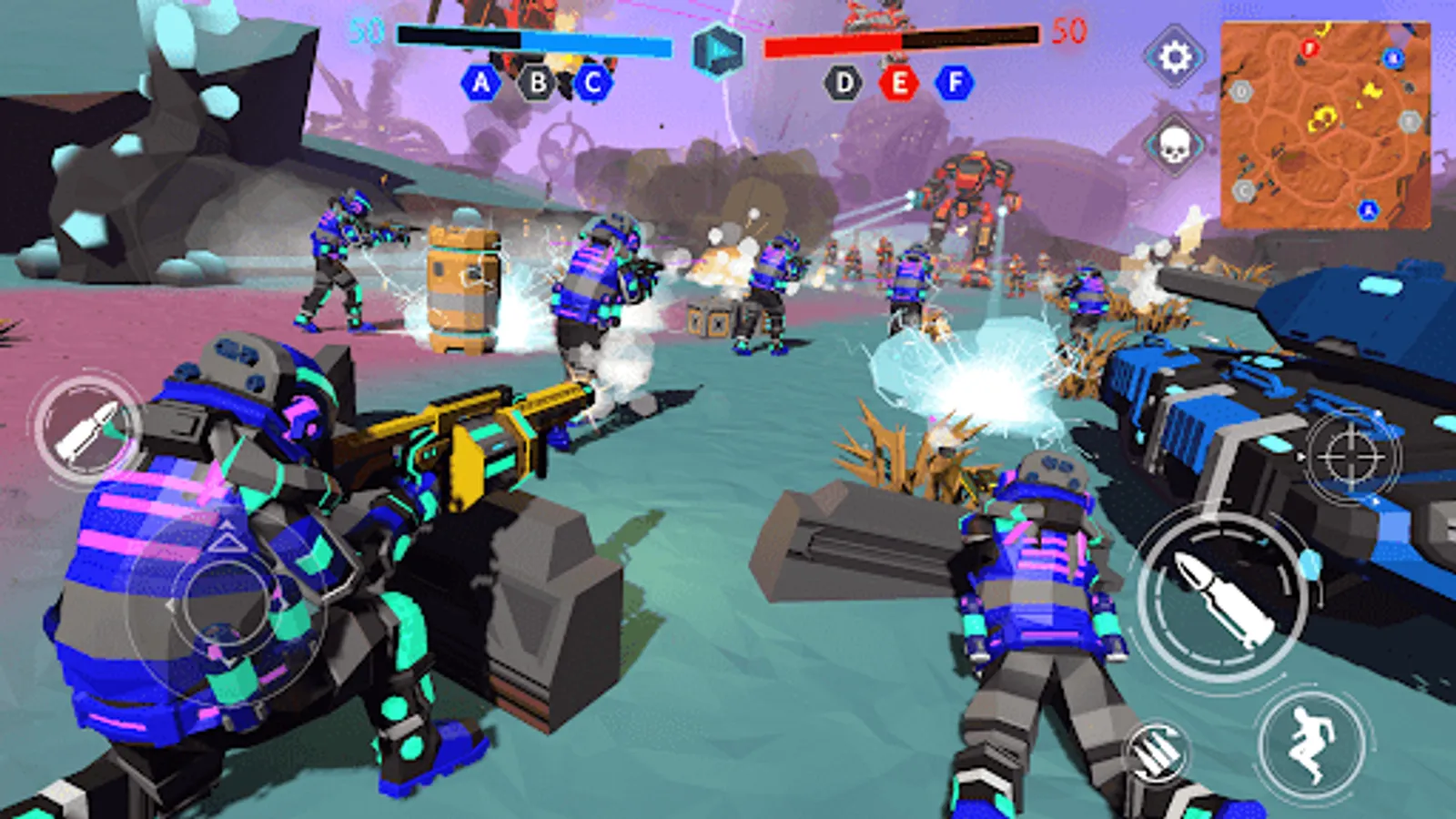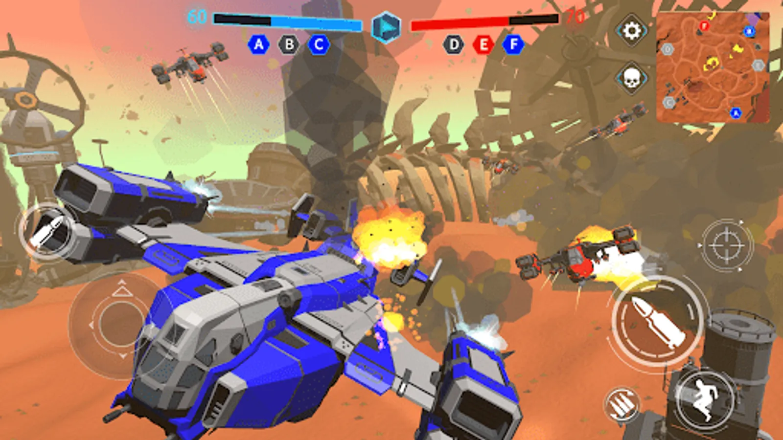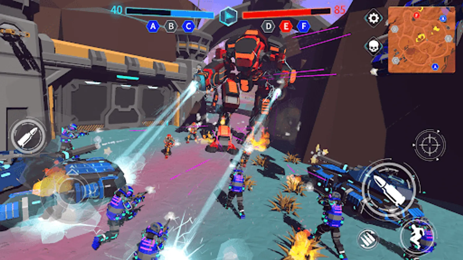 Assemble your own garage of robots with unique abilities and weapons and win your enemies in dynamic 30v30 battles!