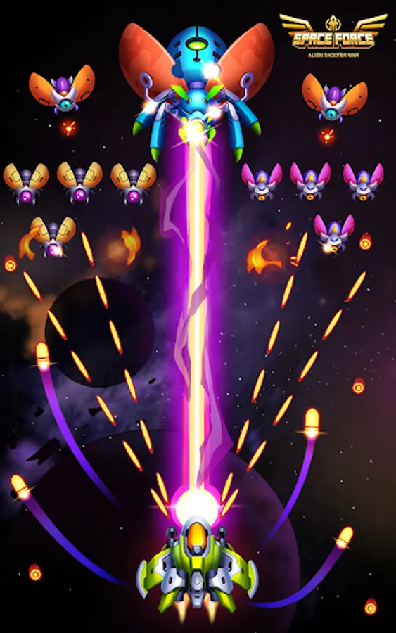 As a member of the Space Force, you will join with other space shooter against the space invaders and protect the Earth. Start your galaxy attack in many different ways right away: Start with Sparrow spaceship, become stronger at every level to defeat space invaders to bring peace to Earth.. It’s an arcade shooting games, easy to play, just concentrate and destroy everything that stands in your way!