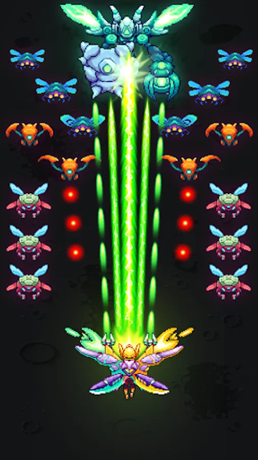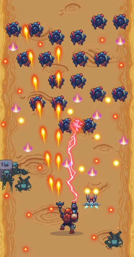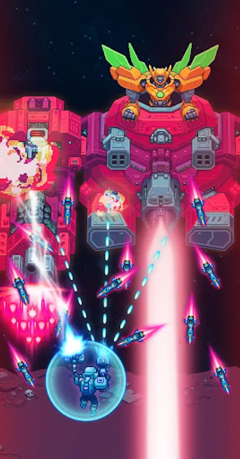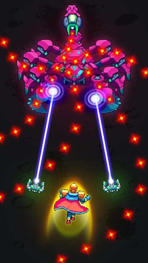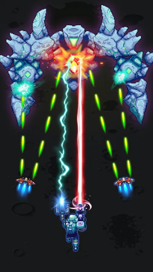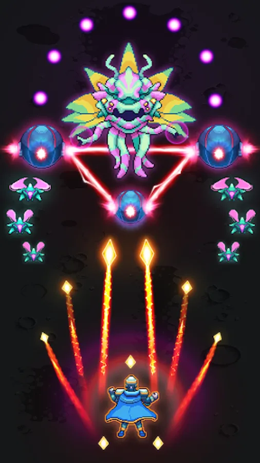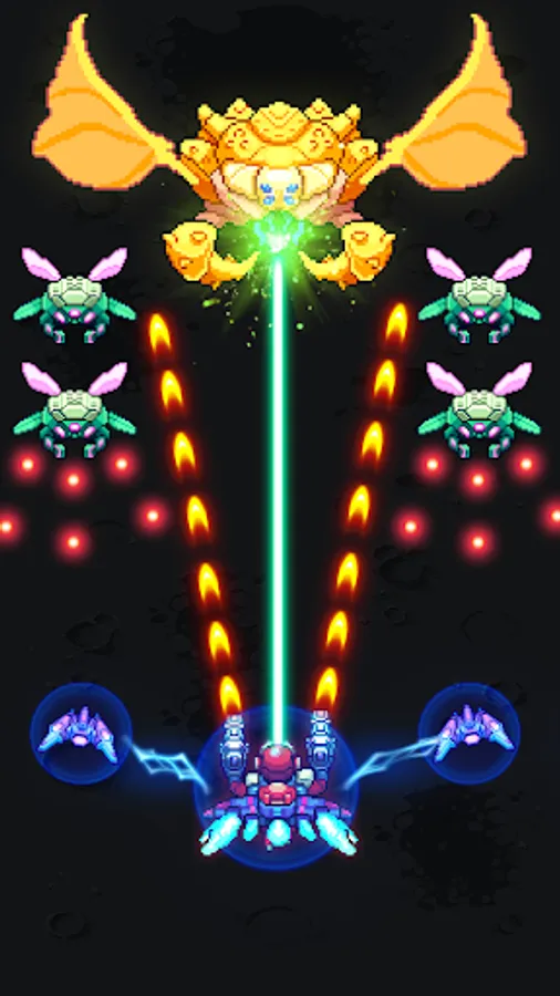 Space Gunner: Galaxy Alien Invader adds fresh elements to the classic vertical shoot'em up genre while still honoring nostalgic feeling of pixel retro arcade space shooting games.