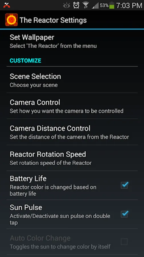 It's almost as if you're looking through a window into the universe. Move your device around to view different perspectives of the reactor core. Choose from three unique backgrounds to fit your liking, including: