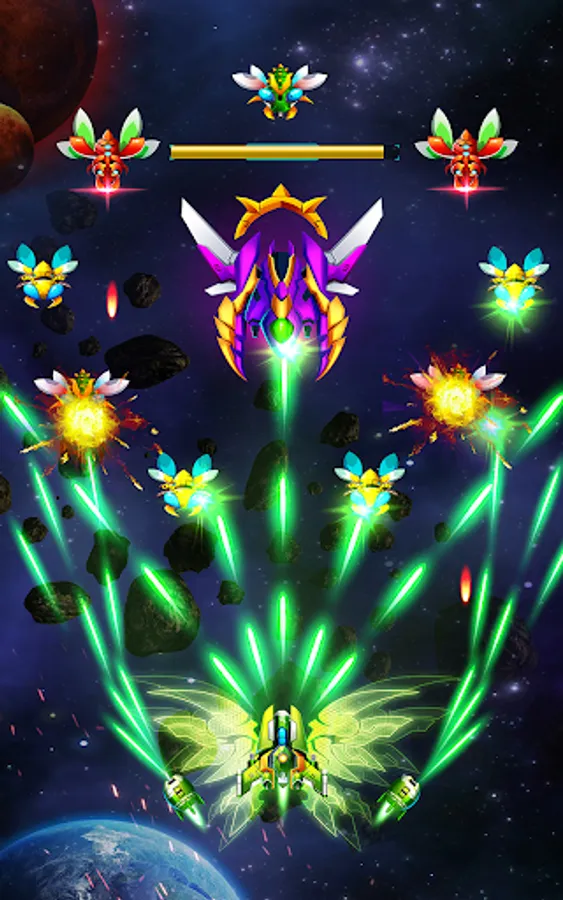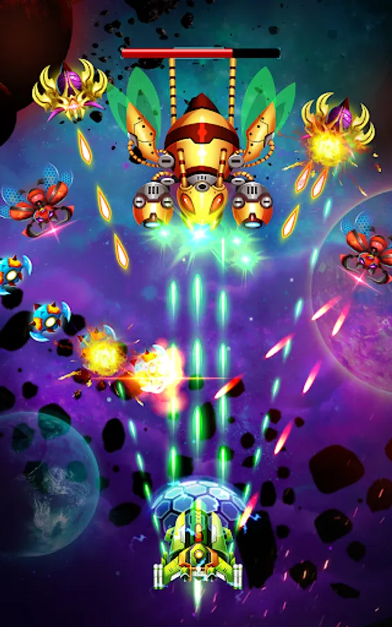 - Constant updates with tons of new updates to your spaceships and supporters in this alien shooter game.