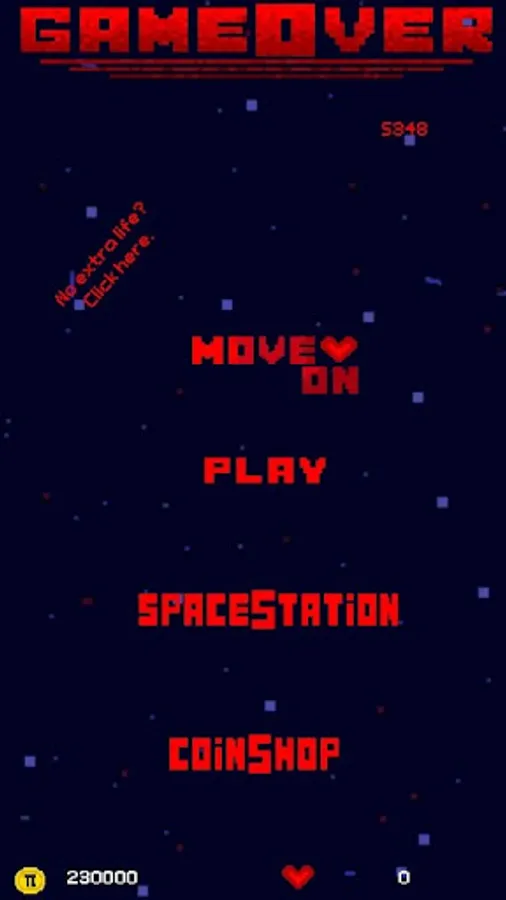 Wenn dein Raumschiff zu viel Leben verloren hat, explodiert es und die Mission ist beendet. Aber mach dir nichts draus. Während dem Spiel kannst du Extraleben einsammeln, welche dir noch eine Chance verschaffen können. Aber Achtung! Die Extraleben bewirken zwar, dass dein Score aus dem letzten Spiel erhalten bleibt, allerdings bleiben auch die Gegner auf den Niveau, auf dem sie zum Zeitpunkt deines letzten Todes waren.