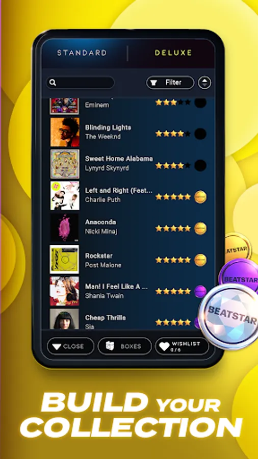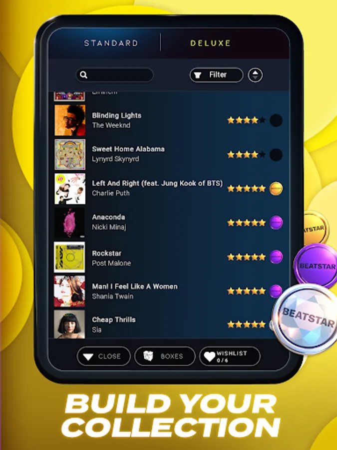 Play to your favorite songs and discover new ones along the way. Imagine the best Coachella lineup ever: That's Beatstar. Play through hits from Doja Cat, Avicii and Lil Nas X, or explore the classics like Lynard Skynard's Sweet Home Alabama. The music is endless with Beatstar.