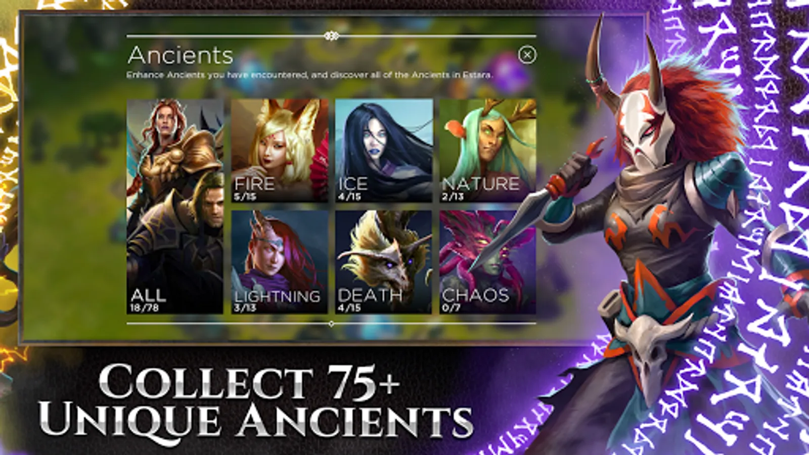Join forces with the "Ancients"; Legendary WARRIORS, GODS and MONSTERS able to harness the forces of nature. Use their DEVASTATING POWERS to turn the tide of battle to your advantage!