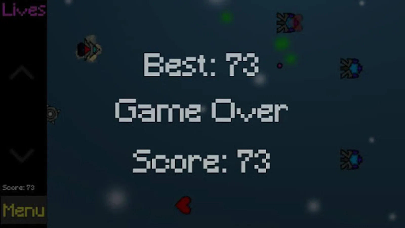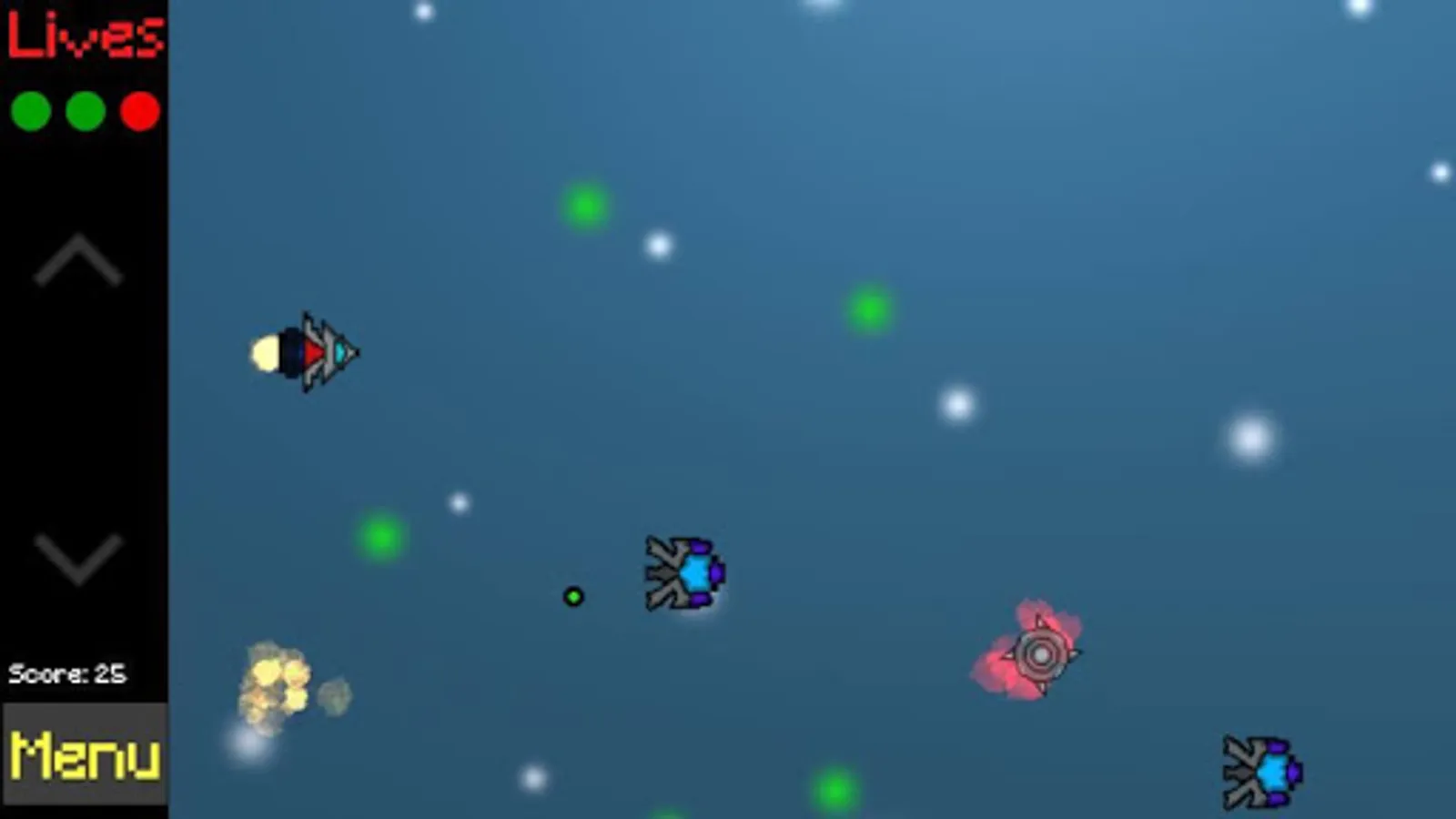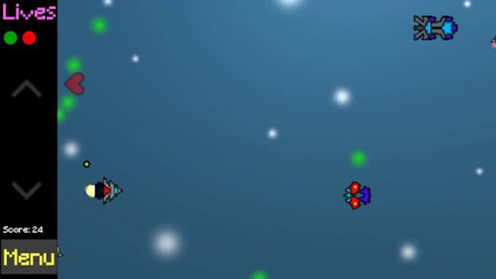 Avoid threats that come upon you. Use the arrow menu to move the ship from top to bottom.