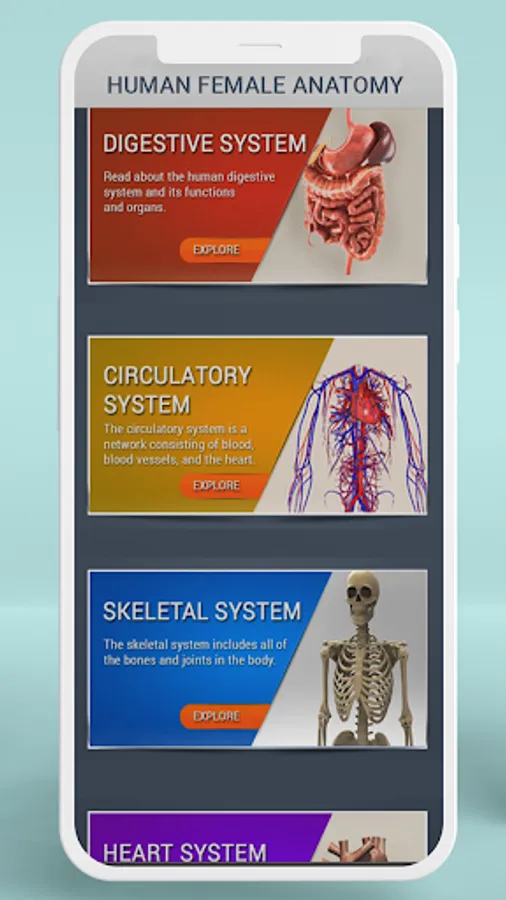 This female anatomy app has a detailed overview of the female reproductive system, digestive system, vascular system, skeleton anatomy, and female reproductive system