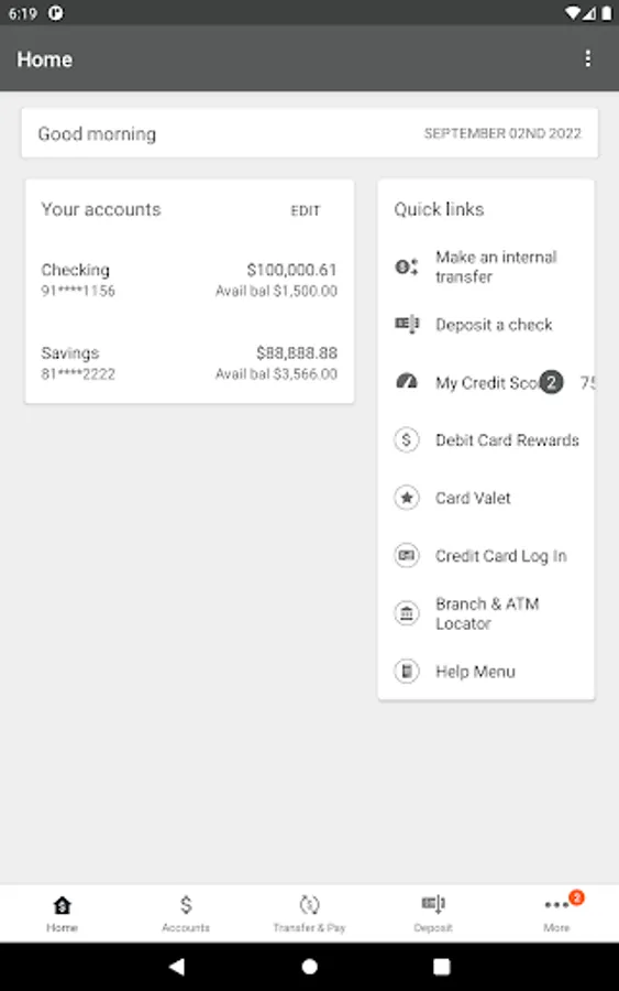 • Instant balance service allows you to view your account balance without having to log in (if you opt in)
