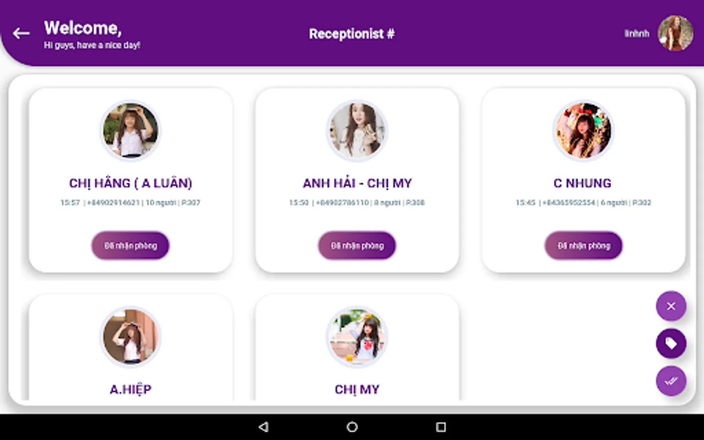 The Receptionist app is a utility tool connect to the Sapp app on CH Play to support the reception staff to manage the reservation and room status in store. To help them dynamic in arranging the room when the customer comes over without have to wait a long time.