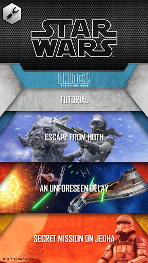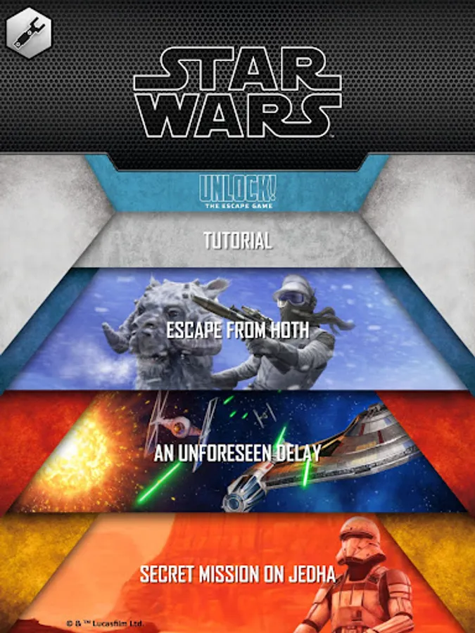 The Unlock! Star Wars The Escape Game application is a free “companion app”: you need a copy of Unlock! Star Wars The Escape Game to enjoy it. This application will allow you to get valuable clues, enter secret codes and interact with a lot of different devices, machines, ships and droids.