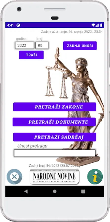 This application is designed so that you can more easily and quickly search all documents of the Official Gazette related to amendments to the law and all documents related to the Constitution of the Republic of Croatia.