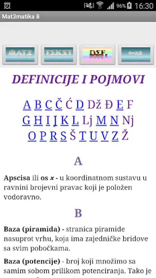 Featured all formulas and all definitions and concepts covered in the 8th grade material, in alphabetical order.