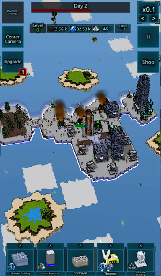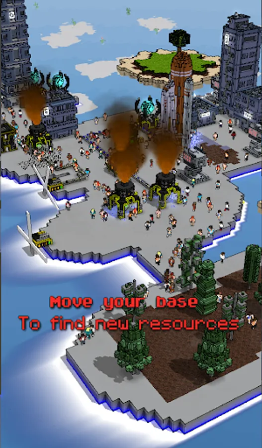-Move your base with the help of thrusters, and search for new resources to mine and expend your base and production.
