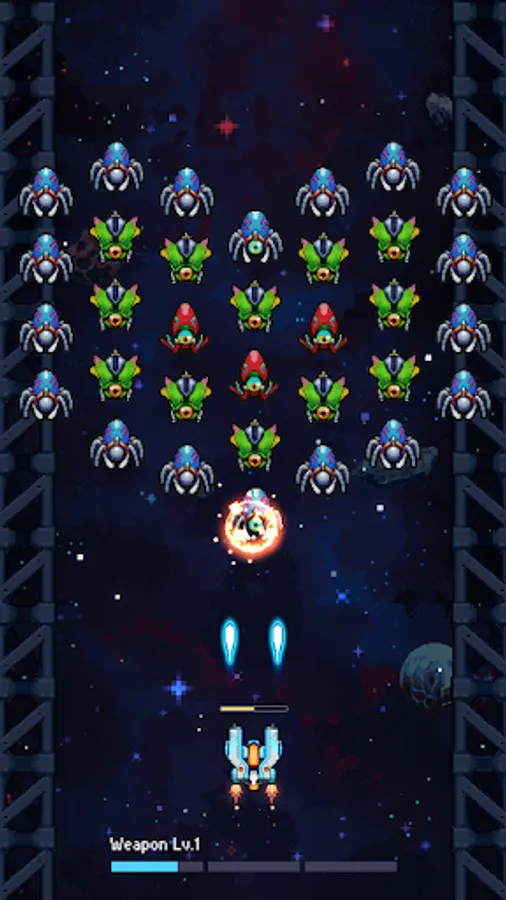 Vanquish the space flies that have invaded our universe. Upgrade your equipment to become the most powerful spaceship in the galaxy.