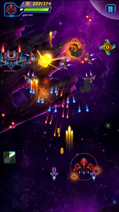 - Use coin and gem to upgrade or evolve your spaceship to fight giant enemies and alien invaders.
