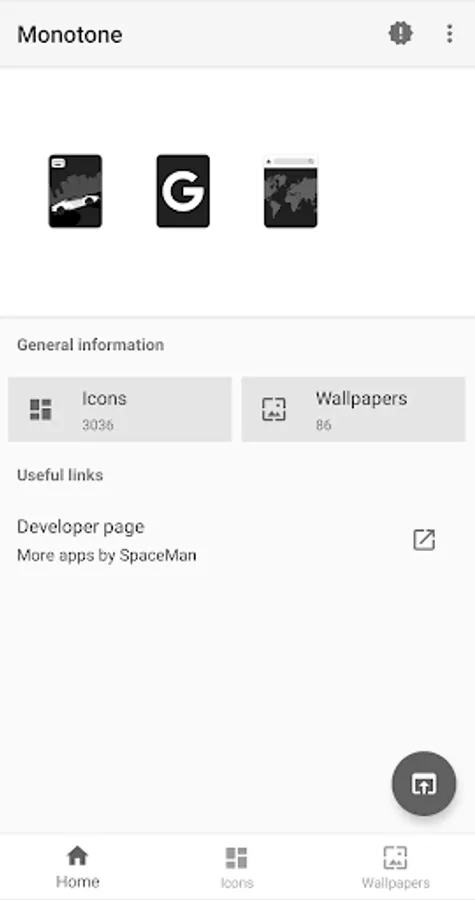 Monotone is a black and white version of verticons icon pack. Icon request feature has been removed, only icons from verticons will be added to monotone icon pack. For using alternate icons, long press the icon on your home screen and click edit [only available if your launcher supports it, eg. Nova launcher, OnePlus launcher, Lawnchair Launcher]