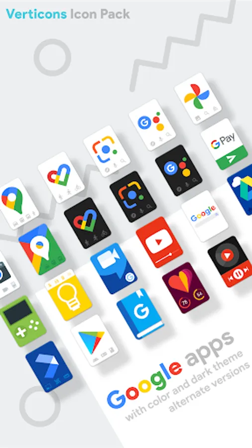 All other launchers which support standard icon pack formats are supposed to work with Verticons, use the icon settings menu of your launcher which is usually accessed by long pressing on an empty space on your home screen. Use your launcher's theme settings menu to check compatibility or to apply Verticons. An apply button appears inside Verticons for some compatible launchers. Some devices with System wide theme support also support Verticons (eg Custom ROMs, OnePlus OxygenOS)