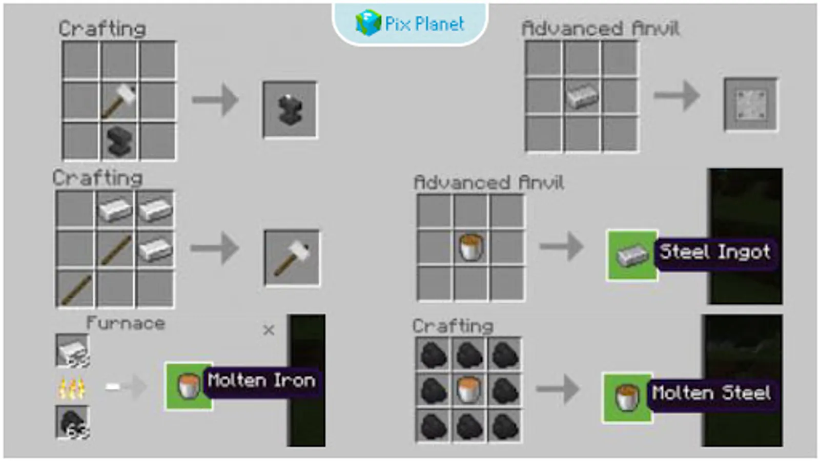 After obtaining molten steel, you can create a steel ingot. There are many uses for this material - almost all add-on items are crafted from it.