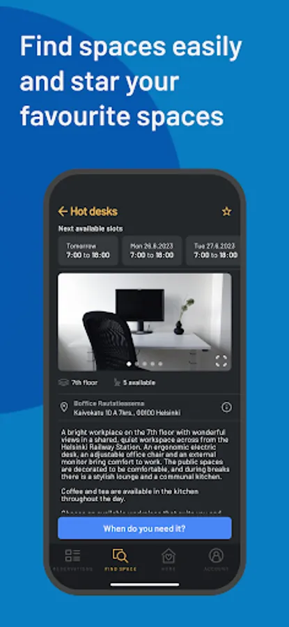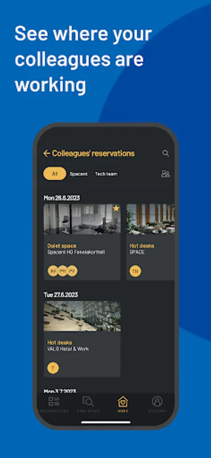 - Filter spaces based on amenities (such as phone booths or external monitors) or colleagues