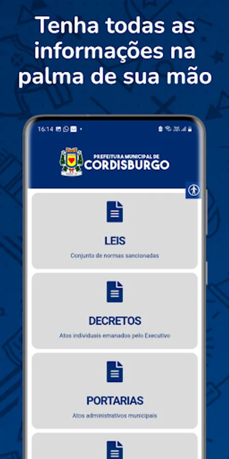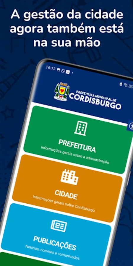 Download the app and use all the online services provided by the Municipality of Cordisburgo.