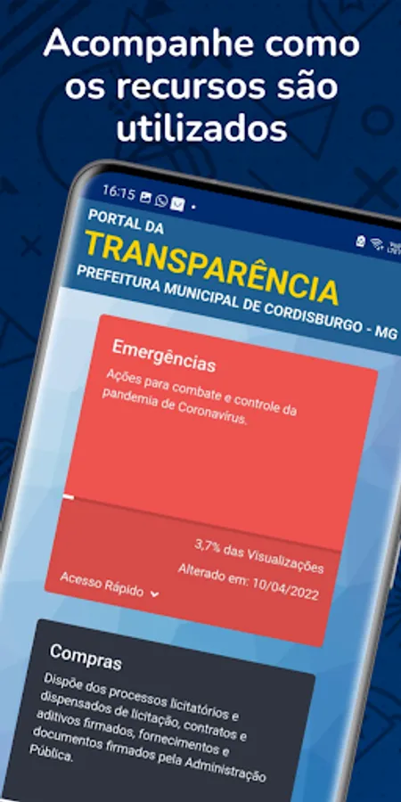 Official application of the Municipality of Cordisburgo with administrative information, data about the city, information about public services, collection and municipal expenses, in addition to issuing IPTU guides, permits, certificates and paychecks.