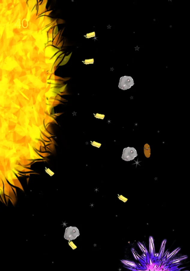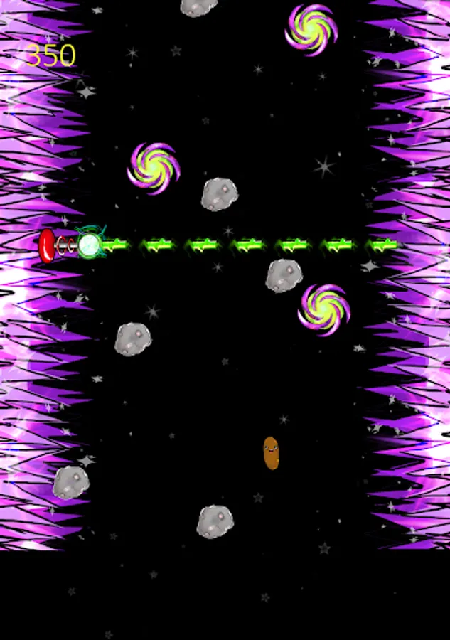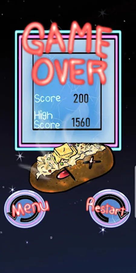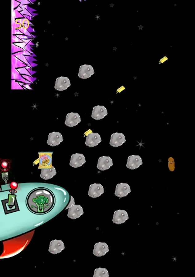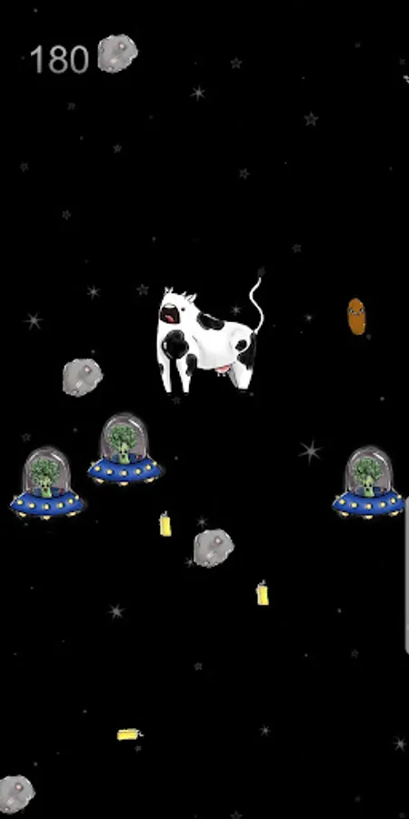 Blast off as the world's most elite starch and prove you have what it takes to conquer three difficult, endless levels. There will be butter-shooting broccoli aliens, flying space cows, and all sorts of horrible ouchies.
