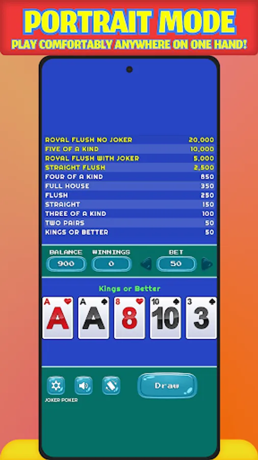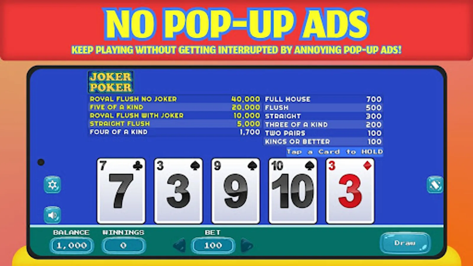 Joker Poker - Offline is the ultimate poker game for your mobile device! Enjoy the thrill of poker anytime, anywhere, without any internet connection or money involved. Just tap to play and see if you can beat the odds!