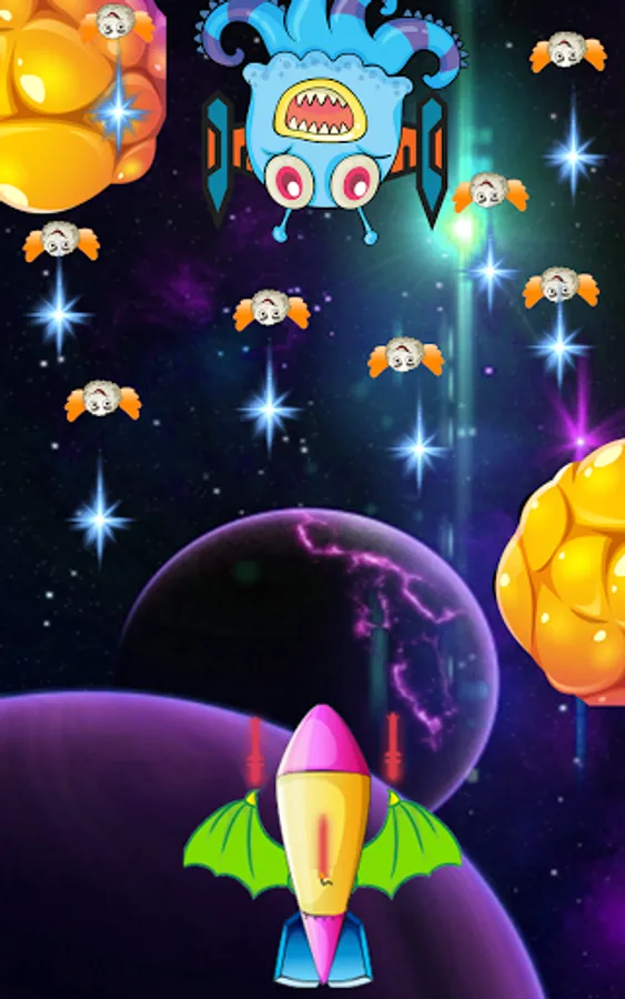 * Move left or right to avoid the Spaceship damages.