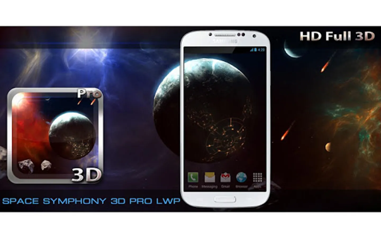 Installation: The main screen (long press) → Live Wallpaper → SPACE SYMPHONY 3D PRO LWP
